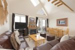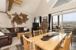 The main level is warm and bright with a vaulted ceiling and fireplace, providing the perfect spot to cozy up on the large sectional sofa after a great day of skiing or hiking or enjoy a fun game with family or friends at the dining table, while taking in the amazing Lone Peak views. The fully loaded kitchen, large dining area for 6+, and breakfast bar, are all open to the large living room, so if you are the cook ... you don't miss a thing. The outdoor deck off of the living room offers outdoor seating, a Weber gas grill, and fantastic mountain views.