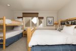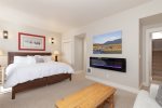 The large master suite is on the lower level with a king bed, large private bath, beautiful fireplace, Smart TV, and a large sitting area. Walk out directly from here to your private hot tub with views of Lone Peak, the slopes, and the Big Sky Valley. Upstairs from the main level you will find bedroom suite 2, also with a king bed and private bath, as well as a twin over twin bunk bed, and Smart TV.