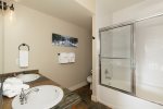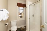 Bedroom 1- King bed | private bath, large tub/shower, toilet, sink | Smart TV | lower level