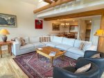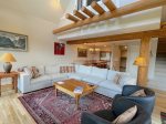 The main level is the perfect location for everyone to gather to prepare for a great day on the slopes, watch the skiers ski by if you are not skiing for the day, cook a great meal in the fully loaded, large kitchen, warm up by the fire in the evening with a great glass of wine or hot cocoa, watch your favorite movie or play a great game of cards.