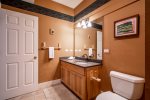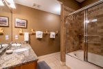 The layout of this Saddle Ridge is sure to meet the needs of families and ski groups alike. Master Suite #1 is located on the upper level with a king bed, private bath, twin sleeping loft, and TV. Master Suite #2 is located on the lower level with a queen bed, private bath, and TV. Bedroom 3 is located on the lower level and has 2 twin beds and TV and bedroom 4, also on the lower level, has a queen bed and TV. The bonus bunk room is on the lowest level, along with the washer/dryer and has a set of twin log bunk beds and TV and is a completely private room.