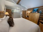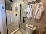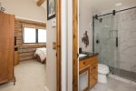 Bedroom 1- King bed | private bath with large tile shower and heated floor | Smart TV | main level