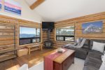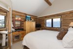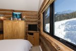 This private cabin on the slopes has 2 bedrooms and 2 full bathrooms. Bedroom 1 has a king bed, private bath, and TV and bedroom 2 has 2 XL twin beds and a TV. In the living room, there is a gas fireplace, a large Smart TV, and a Bose Bluetooth speaker + VIEWs, VIEWs, and more VIEWs. Drive right up to the cabin, as there is parking just outside the cabin.