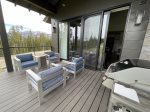 Private hot tub on back patio with Lone Peak & Spanish Peaks Mountain Range views